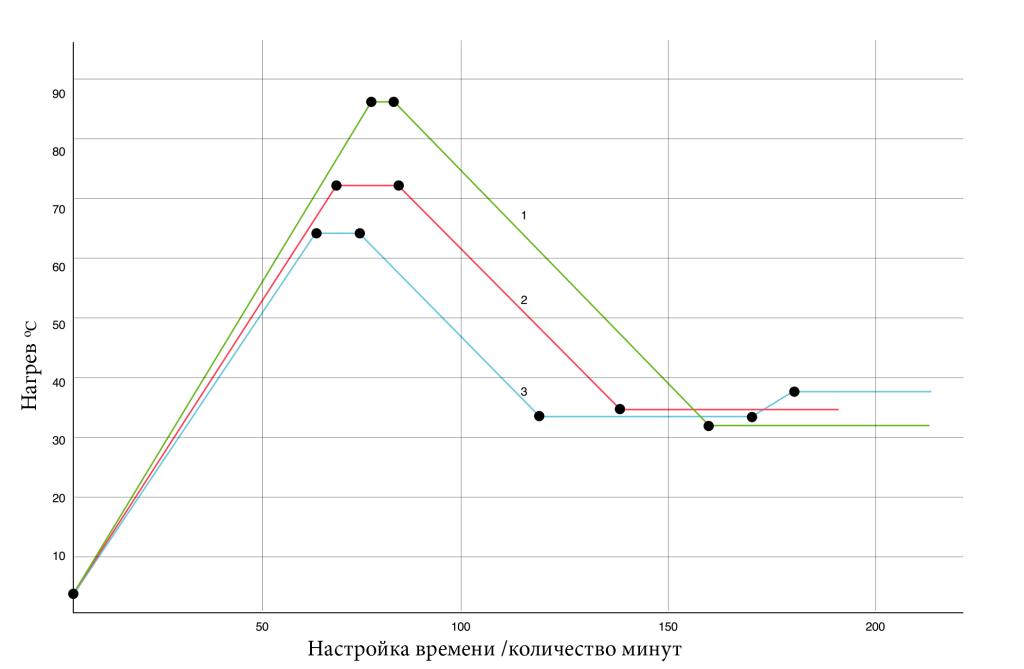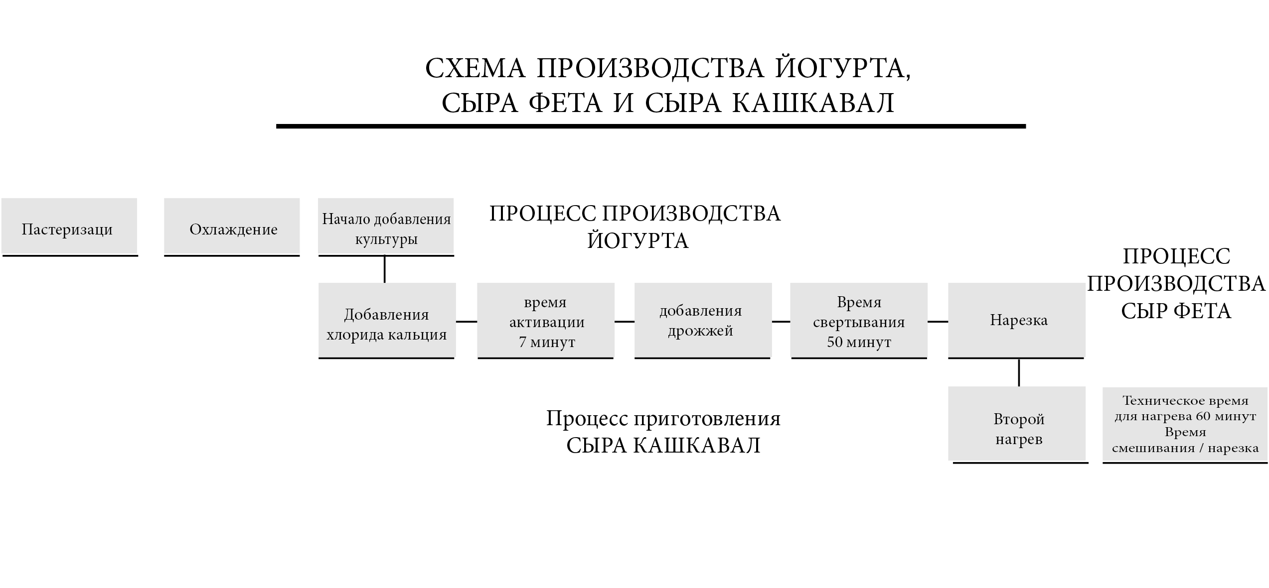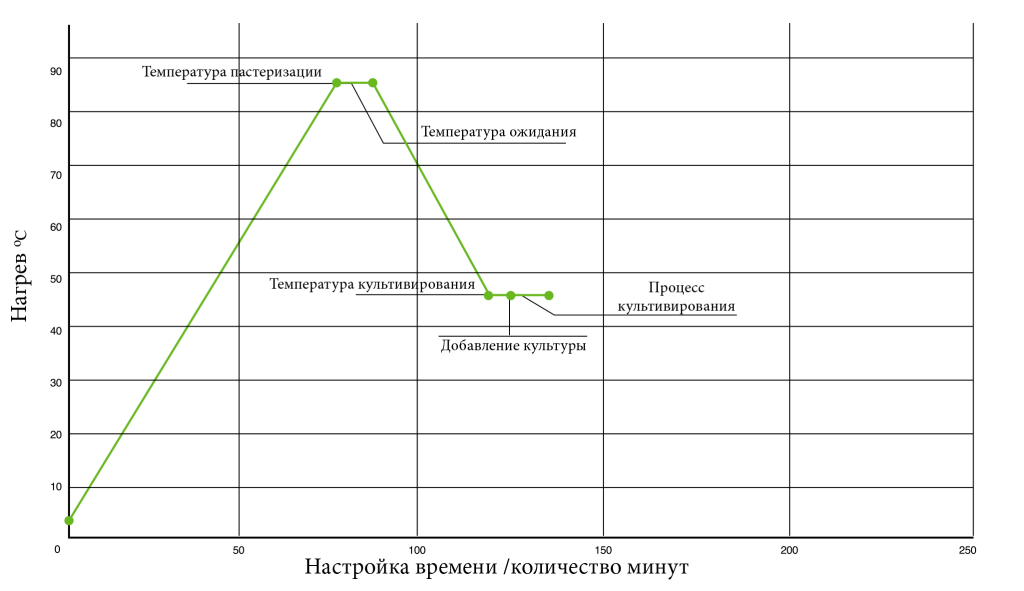 Схема температурыи настройки времени в процессе производства сыра Кашкавал